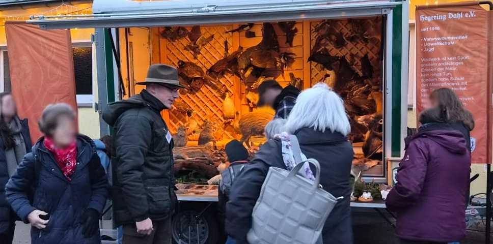 Auch beim herbstlichen Bauern- und Kreativmarkt am 11. Oktober 2025 hat sich der Hegering Dahl e.V. wieder mit einer Präsentation der „rollenden Waldschule“ beteiligt. Während der Marktzeit (10:00 bis 18:00 Uhr) standen wir für Jung & Alt zu allen Fragen rund um Jagd, Natur und Wildhege zur Verfügung.